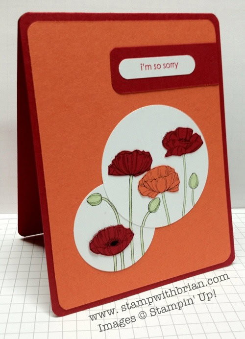 Stamp sets: Pleasant Poppies, Teeny Weeny Wishes  Papers: Real Red, Tangerine Tango, Whisper White  Inks: Basic Black, Certainly Celery Stampin’ Write Marker, Real Red  Accessories:  2-1/2″ Circle Punch, 1-3/4″ Circle Punch, Word Window Punch, 3/16″ Corner Punch