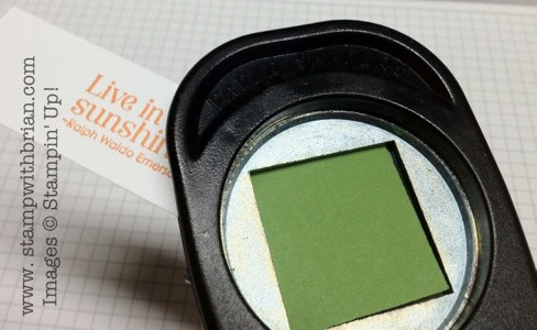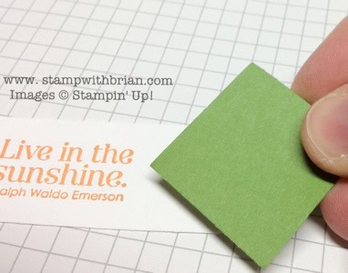 2. Using my 1″ Square Punch, I punched a square from scrap paper. I placed a little adhesive on the back of the green square and positioned it on the soon-to-be banner, making sure to line it up exactly where I want it.