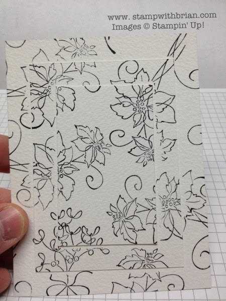 I trimmed the water color paper using the measurements found in my Triple Time Stamping Tutorial.  Here’s what the water color paper looked after I stamped the images with StazOn: