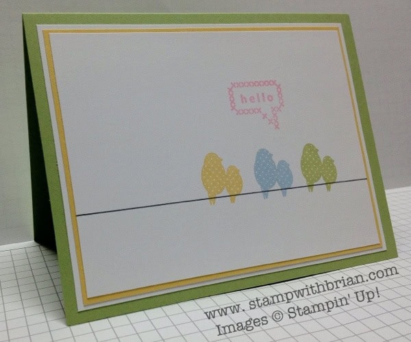I love love these two little birds…I have thought about ordering this stamp set just to get these polka dot cuties…i fell in love with that adorable fox (retired Fox and Friends ) and ordered that set just for that cutie . Your idea is a great one ..I was trying to think of how to use them and not have it a baby card. Thank you for how to draw the line from all of us straight line challenged . Be back later after I go check out that other set you mentioned .