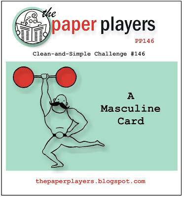 The Paper Players have thrown down the gauntlet this week. There’s no color challenge, and there’s no sketch challenge. Instead, Ann has challenged us to make a Masculine card that’s also clean and simple. Challenge accepted, Ann. Here’s my card: