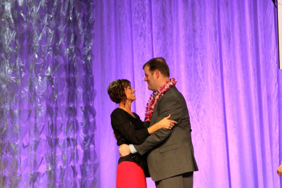 As my name was called, I felt the immediate embrace of the Pals, but I also felt an amazing roar from the rest of the crowd. It was amazing! Here’s a quick photo of Shelli Gardner and me (either before or after we hugged). While Nicole grabbed a photo that looks like Shelli and I are about to be married, that is not one of the amazing things that happened this week:Stampin' Up!, Brian King, Shelli Gardner