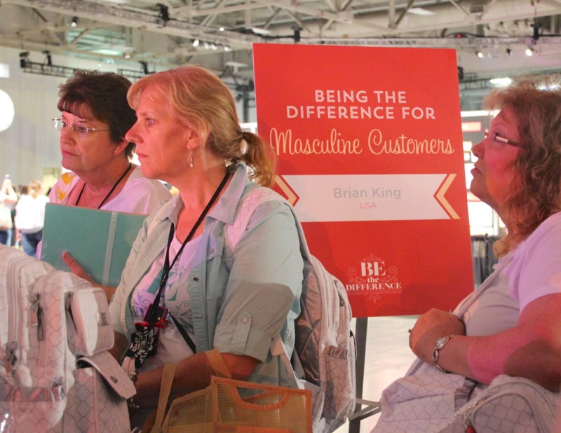 I knew I was going to be offering the same presentation every fifteen minutes or so. I assumed I would have a break between sessions, but that wasn’t the case. As soon as I said, “Thank you for stopping by tonight,” one crowd left and another appeared. I only had time to clear my table to start over while another crowd assembled. I loved every minute of it! My good friend, Kris Kilcoyne, snapped this picture of my presentation (that’s a mirror above me so that everyone could see what I was doing):Brian King, Stampin' Up! Convention presentationKris also snapped this picture of some demonstrators who are watching my presentation. I love seeing my name on a Stampin’ Up! sign (does it get any cooler than that?!). The other thing – and I didn’t know this until I arrived to setup – Stampin’ Up! chose demonstrators from each of the major countries where they have a presence. I was the USA demonstrator. WHAT!? That’s absolutely crazy, and I couldn’t have been more honored.Brian King, Stampin' Up!