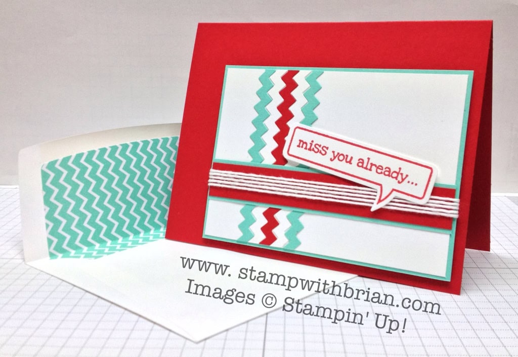 Oh Brian – how you get everything so very perfectly aligned is magic. Being a sewer and a quilter I just love ric rac and seeing it made from paper just puts a huge smile on my fact and yes – perfect alignment yet again! Wowser! I have almost given up trying to perfectly align twine on my cards. I’ve cheated and just cut twine and then taped it on the back of the card stock rather than wrap it around, I’ve tried putting teensy weensy pieces of tape along the twine so it won’t move – you name it, I’ve tried it but you, Mr. Magic, have mastered it. Fabulous card and it sure brightened this rainy day for me.