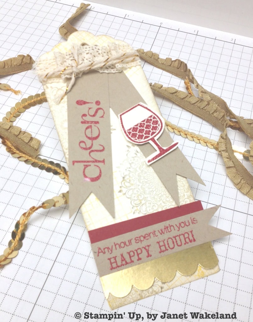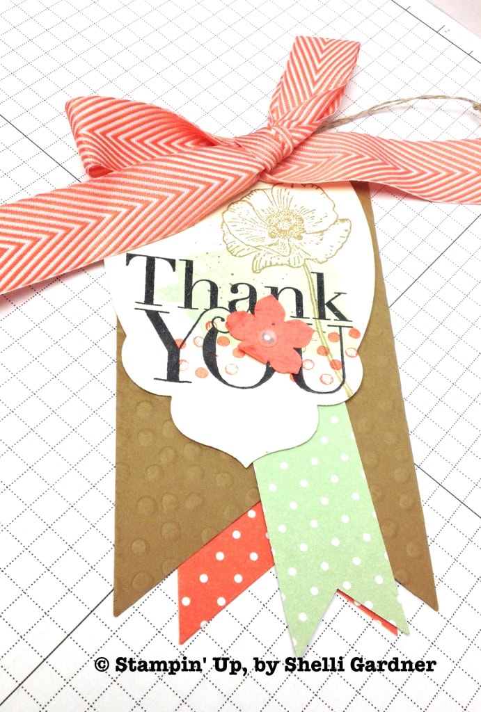 I recently earned an incentive gift from Stampin’ Up! As part of a Leadership goal, Shelli Gardner, co-founder and CEO of Stampin’ Up!, added an extra bonus gift of a Hip Hip Hooray Kit. Since the gift was from Shelli, it included a gorgeous, handmade tag with her signature on the back. Since the incentive gift was from Shelli, I can only assume that she packed the extra goodies to my box and made this tag just for me. I can dream, right?