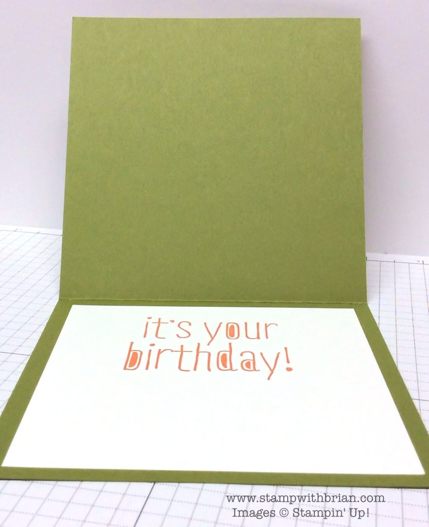 I used Old Olive Blendabilities to color Mr. Happy Frog and then stamped the sentiment from Bravo! photopolymer set. “Hip-Hip” was as close to “hop” as I could get without being too over-the-top. Add some confetti from the Cupcake Builder Punch, and my creating was complete…almost.