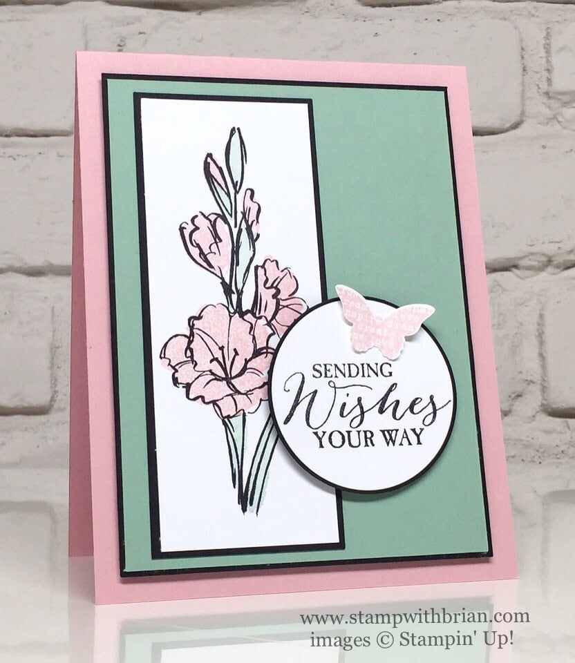 - Three Quick-and-Easy Steps. Boy, oh, boy! I love this bushel of gladiolas. The stamp set, Gift of Love, is one of many Host Sets you can earn with Stampin’ Rewards. It only takes three quick-and-easy steps to create this beautiful image. I stamped the outline in Archival Basic Black, stamped the flowers in Blushing Bride and stamped the leaves in Mint Macaron. No messy watercoloring to create a beautiful, watercolored look – I like it! If you missed the first card I made with this set, you can see it here. Here’s a look at this amazing set: