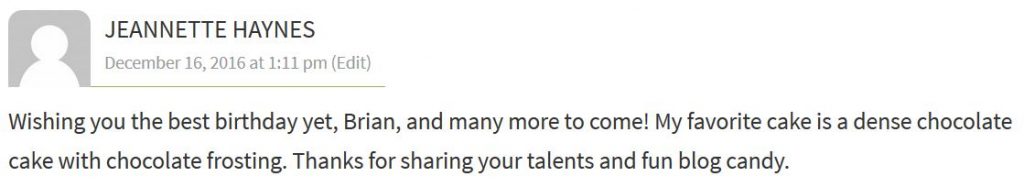• Some of you buttered up to me by saying “coconut cake” and “peanut butter cake.”  You are very smart!  It still didn’t sway my choice of the winners – that was completely random.  I really respect the ones who said “caramel cake” because you don’t know it’s also one of my favorites.