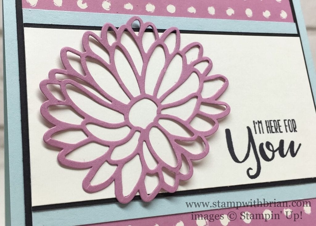 - Stylish Stems. Wow! If there ever was a set of Framelits that came with endless bells and whistles, this is it! At first look, you probably find the die cut pretty, but you might not recognize that the flowers can be cropped in so many different ways. Not only can this flower be cut into a piece of paper with the Thinlit Die, but you can then crop around the flower to have a stand-alone image. How brilliant is that!? Here’s a card I made where I just used the Thinlit on a piece of paper and didn’t then cut it out with the Framelit like I did on today’s card (you can click on this card to read my original post):