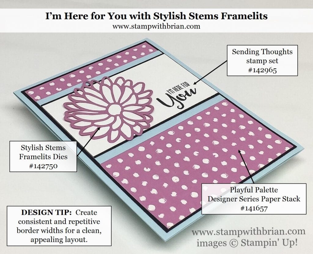 Stamp Sets: Sending Thoughts Papers: Playful Palette Designer Series Paper Stack, Soft Sky, Sweet Sugarplum, Basic Black, Very Vanilla Inks: Archival Basic Black Accessories: Stylish Stems Framelits Dies