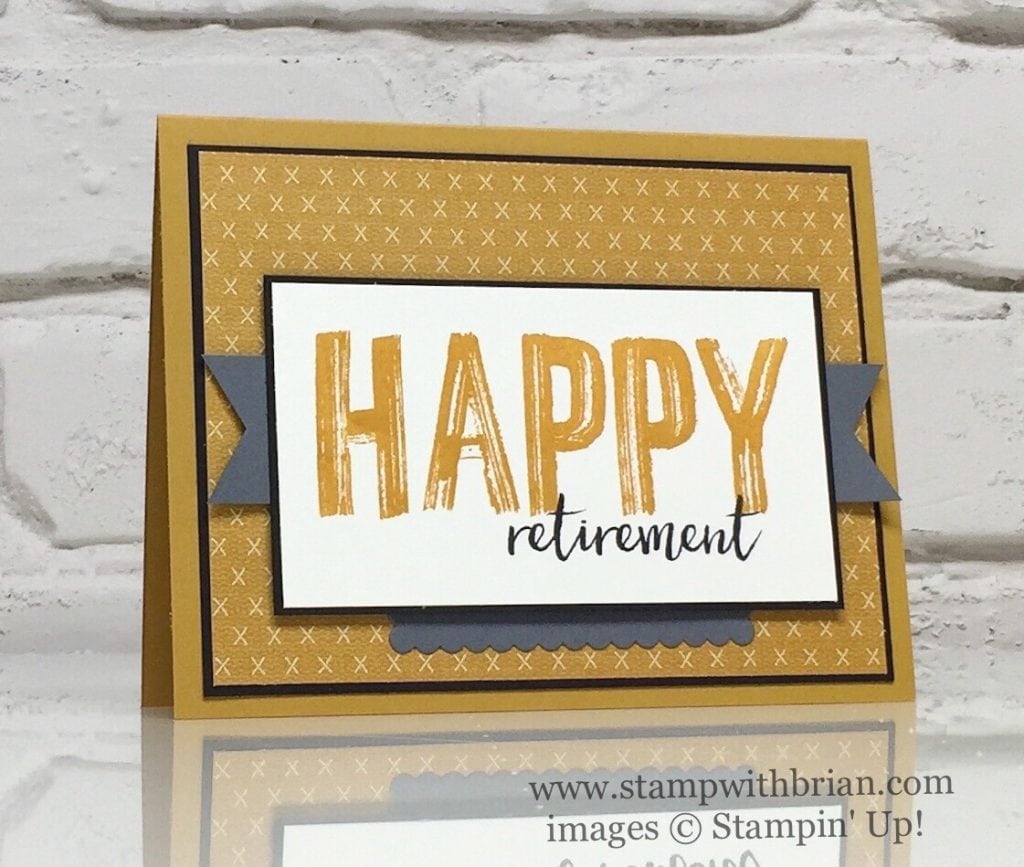 The “happy retirement” card I shared last week for the FabFriday sketch challenge was my second attempt at the card. I liked the first card, but I loved the second one. Here’s the final card that I shared on my blog (you can click on the photo to read my full write-up about this card):