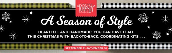 A Season of Style with Paper Pumpkin.Β The Paper Pumpkin kits for October and November are coordinated – two straight months of perfectly coordinated Christmas cardmaking and gifting projects.Β You don’t want to miss out on this!Β If you are a Paper Pumpkin subscriber, congrats (you’re about to enjoy two months of coordinated projects)!Β If you’d like to sign up (I know you do), please CLICK HERE.