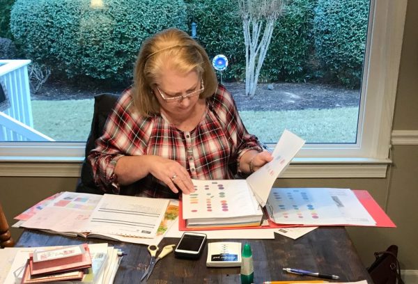 Mary, her book is years and years of organizing and reorganizing. She has color charts in the book and pages from old catalogs. It’s almost like a scrap book. 🙂 It’s always fun when she pulls that book out – she’s very consistent with updating it, which is key! ♥