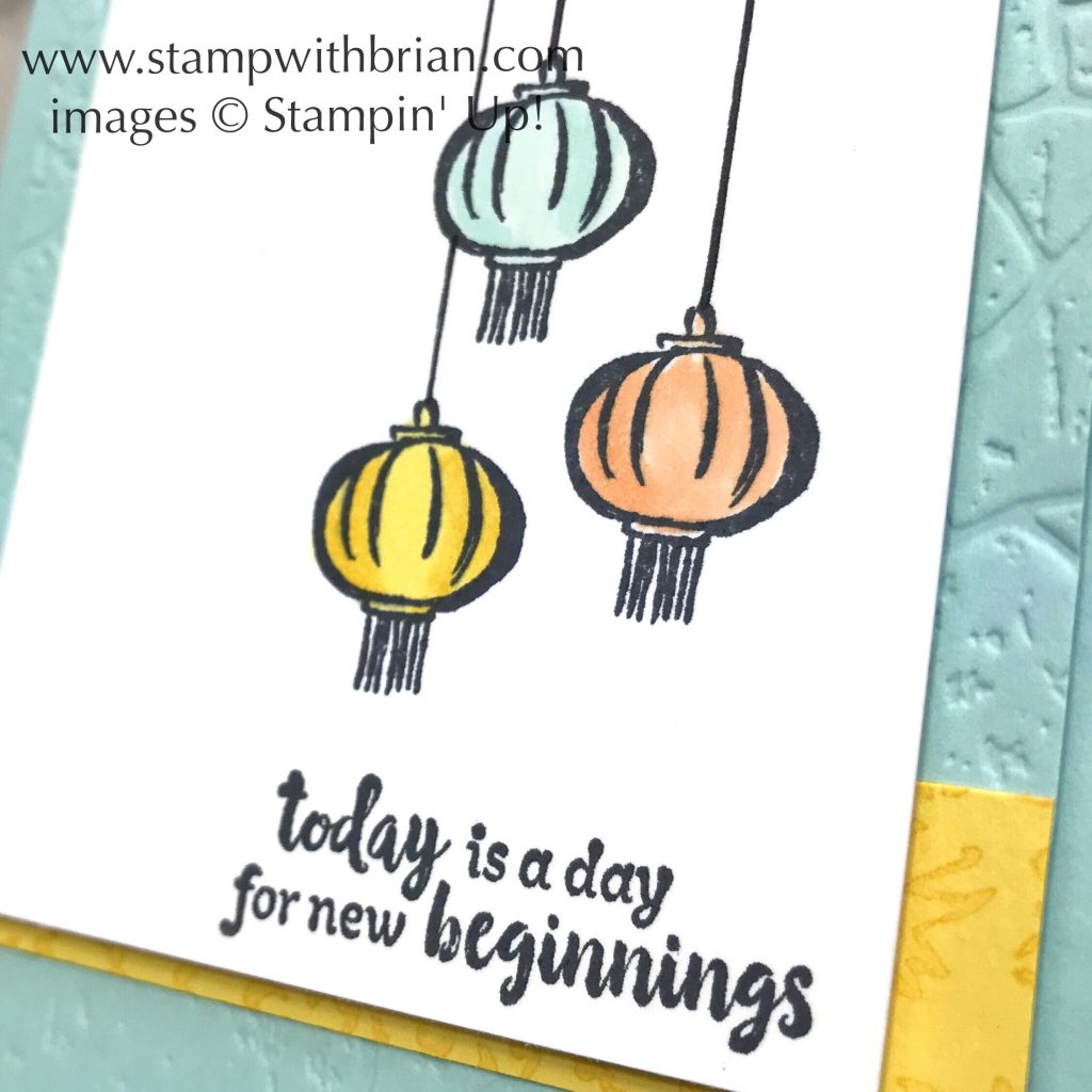 - Paper Lanterns. Paper lanterns are delicate beacons of light that are hung during various celebrations in the Chinese culture. During celebration of the Chinese New Year, the paper lanterns can symbolize good luck and new beginnings. The soft, Spring colors I used for these lanterns, though, could be seen anywhere across the world. I stamped these tiny lanterns with Memento Tuxedo Black Ink and colored them with Stampin’ Blends (Pool Party, Daffodil Delight, Pumpkin Pie).