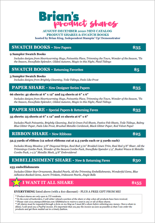 This weekend I posted my Product Shares and Designer Series Paper Swatch Books from Stampin’ Up!’s August – December 2020 Mini Catalog. How exciting! If you want a selection of products from the new catalog (a little bit of everything), I hope you’ll check it out. CLICK HERE