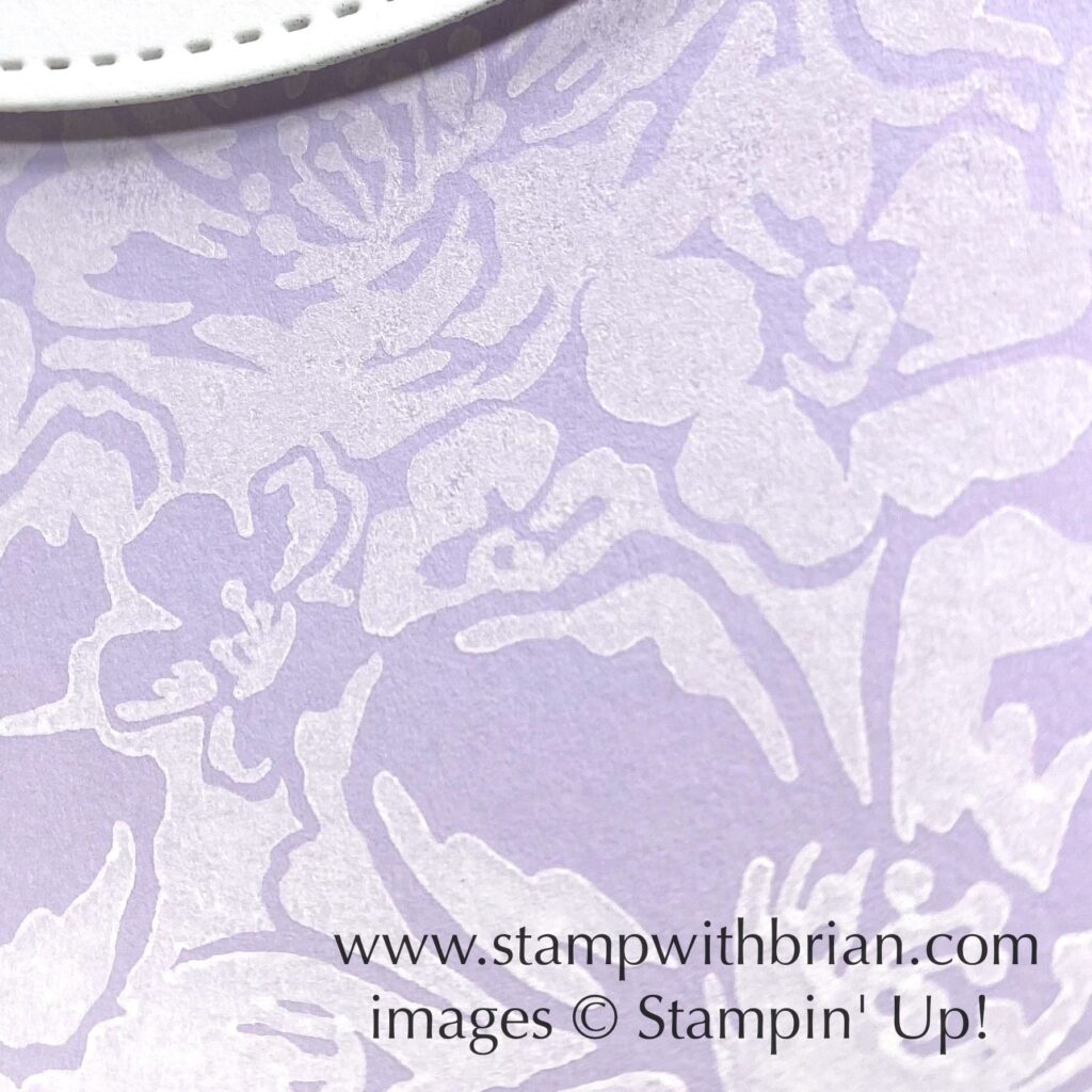 Word to the wise – craft ink, by its nature, dries slowly. I gave my stamped panel almost 24 hours to completely dry. I could have quickened the drying process with my Heat Tool, but I had time, so…I just waited. - Color Combination. I use four colors on this card: the soon-to-retire Purple Posy, Smoky Slate, Basic Gray and Basic White. Purple Posy looks really great with the cold, steely tone of Smoky Slate, but it looks even more special when peeking from behind thin layers of white ink. If you like the mix of Basic White, Purple Posy and Smoky Slate as much as I do, I hope you’ll save this for future reference: