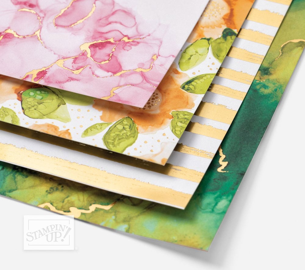 The projects on the front of this year’s Annual Catalog showcase papers, stamps, and accessories from the Expressions in Ink Suite. This suite is one of my favorites in the new catalog, but demonstrators haven’t been able to order it until today. Here’s a closer look at some of the products from this suite: