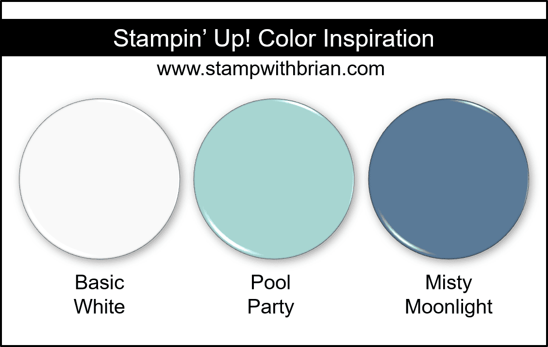 - Blue Christmas. I love blue tones for the holidays. Pool Party is almost always a part of my colors for wintry, snowy cards, I was glad to have Misty Moonlight nearby this year. Together the mix of Basic White, Pool Party and Misty Moonlight is soft and light and beautiful. If you like this mix of colors as much as I do, I hope you’ll save this for future reference: