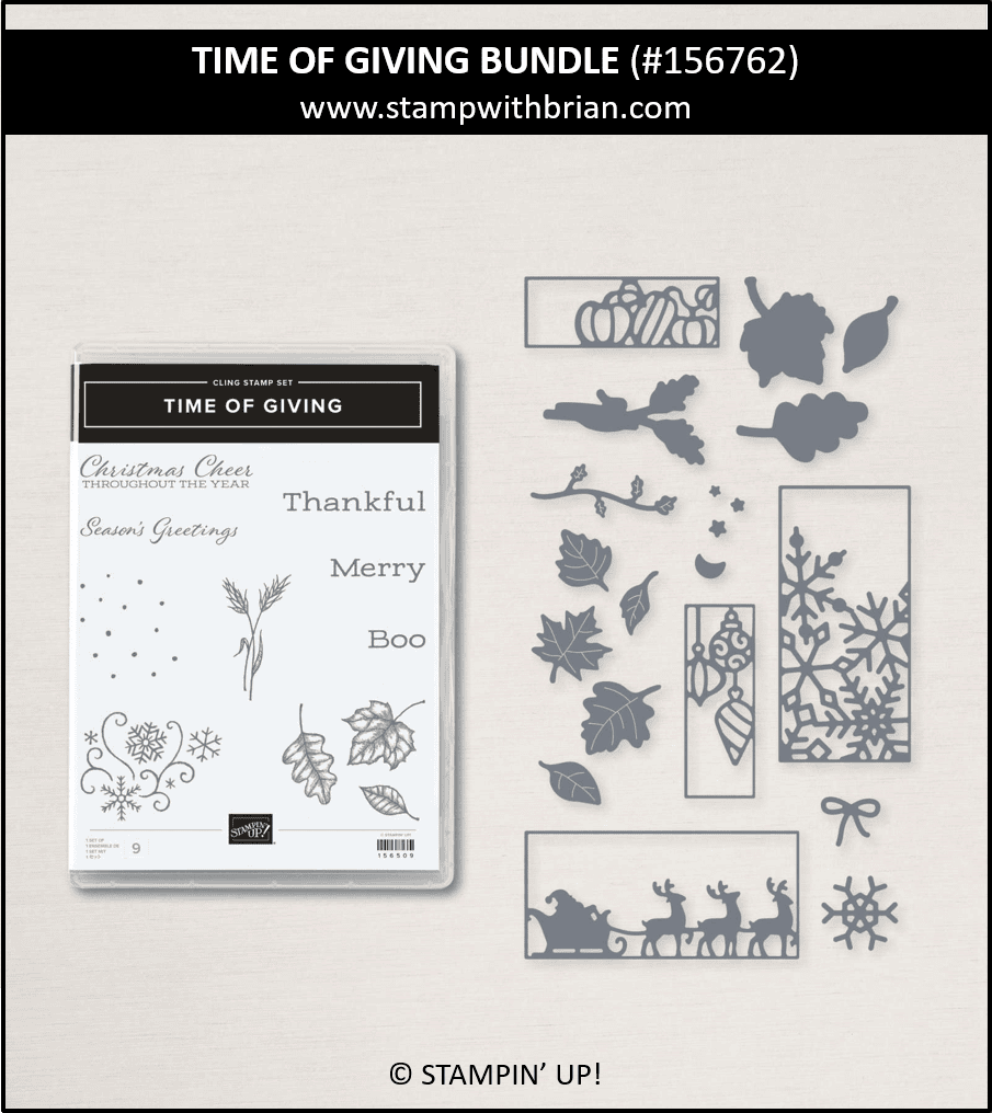 - Time of Giving Bundle. The Time of Giving stamp set isn’t all that exciting until you see the incredible Giving Gifts Dies that coordinate with the set. Since the dies are so tiny in the catalog (again, on page 61), here’s a closer look: