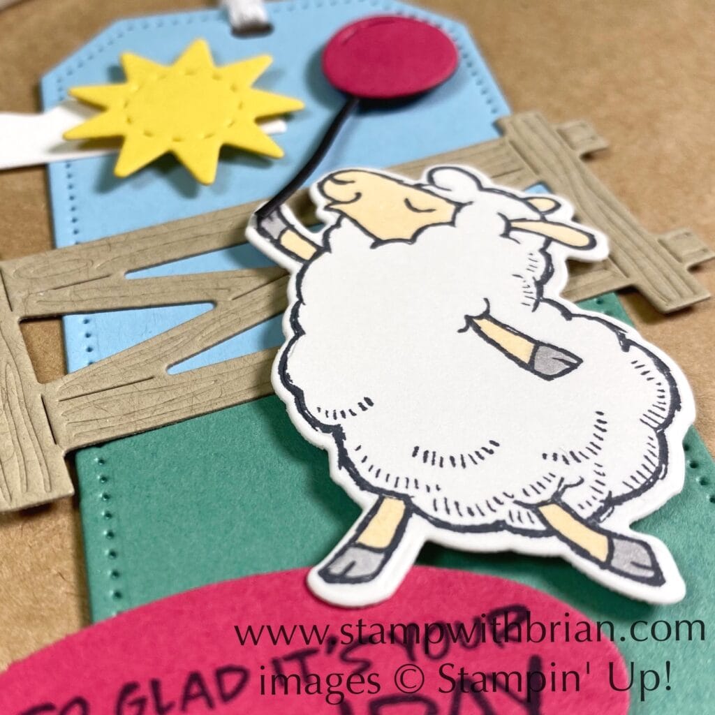 While we are making our Halloween, Thanksgiving and Christmas projects for the upcoming holidays, I’d like to offer a kind reminder that friends and family will also have birthdays over the next several months. You might think it’s fun to send a jack-o-lantern card to someone whose birthday is in October, but you have so many other ways to make their special day feel special. Today I’m sharing a birthday tag I made with the Counting Sheep stamp set and Sheep Dies. Here’s my tag: