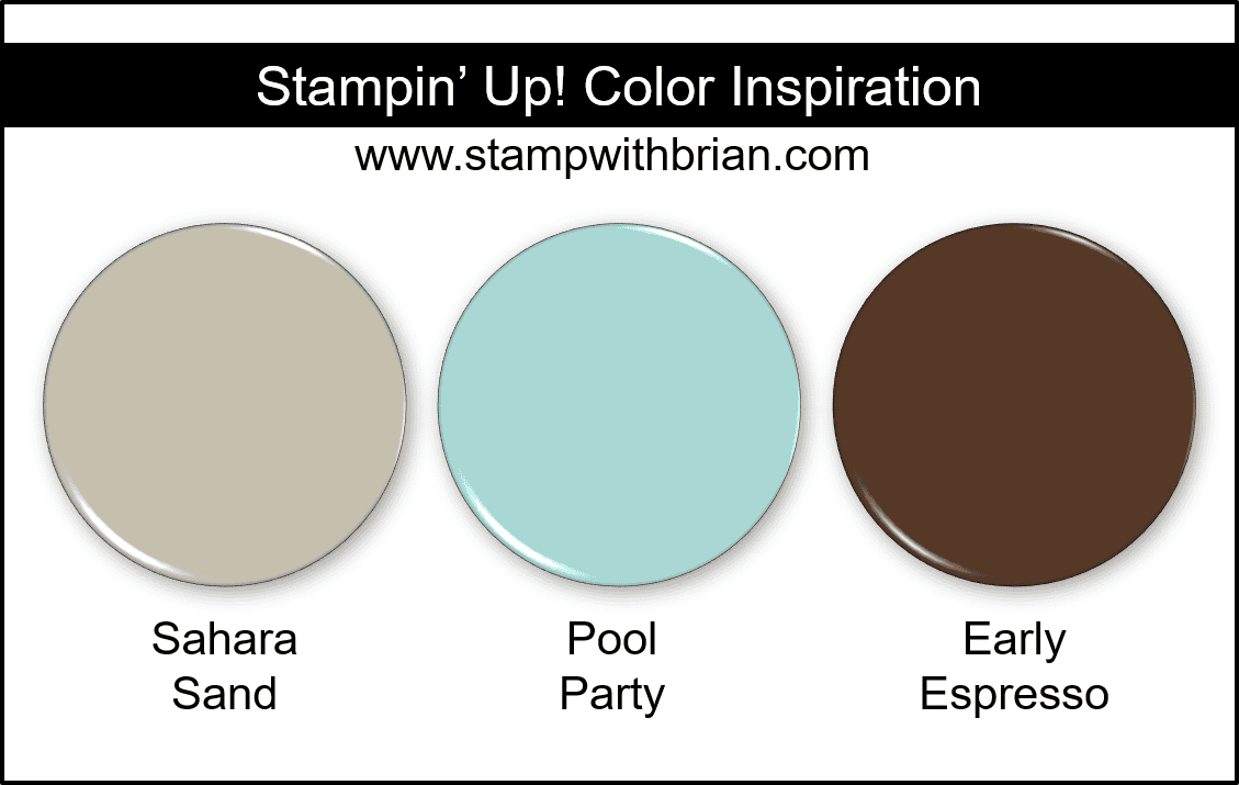 There’s a lot of brown on my card. Between Sahara Sand and Early Espresso, the tones are rich and neutral. I added a little panel of Pool Party below the Focal Point to add a little color – and what color looks better with browns? If you like this mix of Sahara Sand, Pool Party and Early Espresso as much as I do, I hope you’ll save this for future reference: