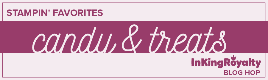 Welcome to InKing Royalty’s September Blog Hop! During this year’s blog hops, we are having fun with our stamping favorites – our favorite themes for seasonal cards and projects. This month’s projects feature candy and treats, so prepare your sweet tooth for some wonderful projects. We are excited to share our creations with you today! After you read my post, I hope you’ll hop over to the next person on the list at the base of this post.