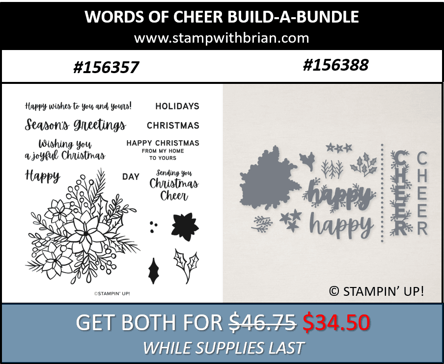 The Words of Cheer Build-a-Bundle includes the Words of Cheer stamp set (#156357) and Christmas Cheer Dies (#156388). While this combination is already offered as a bundle in the July – December 2021 Mini Catalog, the bundled price is $46.75. Since the dies are deeply discounted (while supplies last), you can purchase both of these for just $34.50 by ordering them separately.