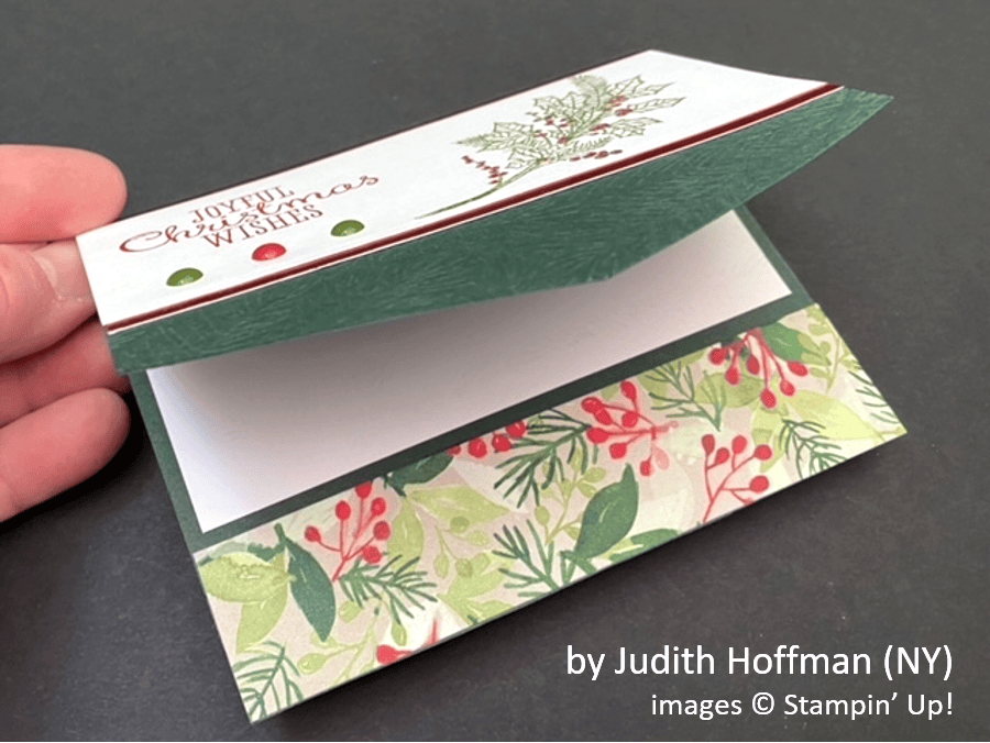 Today’s projects all feature fancy folds, so I’m including two pictures of each of the projects to give you an idea of how they open up. Such fun! The collection of cards I’m sharing today might not all have current Stampin’ Up! products, but every card gives great ideas for color combinations, layouts, techniques – every project is sure to inspire you. Without any further ado, here is the third batch of your beautiful cards: