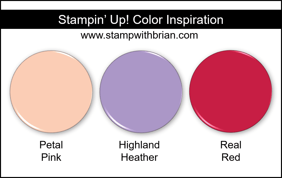 I pulled the colors for my card straight from these papers. If you love this mix of Petal Pink, Highland Heather and Real Red as much as I do, I hope you’ll save this for future reference: