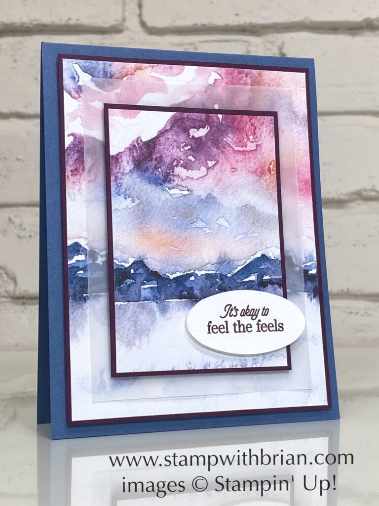 Special Moments, New Horizons Designer Series Paper, Stampin Up!, Brian KingThe mood of this card is set by the gorgeous New Horizons 6″ x 6″ Designer Series Paper. The watercolored images feature a landscape or just ink, but every page is a beauty to behold. Here’s a look at the patterns and colors in the New Horizons 6″ x 6″ Designer Series Paper: