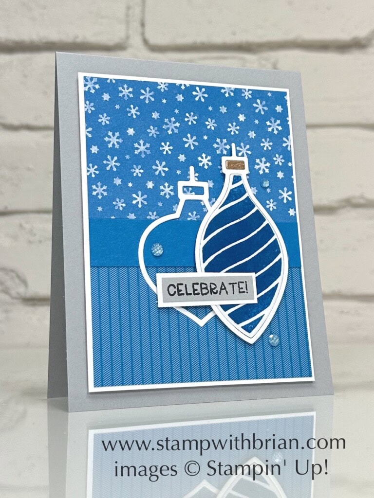 Spruced Up, Stampin Up!, Brian King, Christmas ornaments with packing tapeThe ornament on my card is stamped with Pacific Point ink on Thick Basic White cardstock and cropped with the Spruced Up Outlines Dies. A differently-shaped ornament is a fun sidekick for the focal ornament. Here’s a look at the Spruced Up Bundle from Stampin’ Up!’s July-December 2022 Mini Catalog: