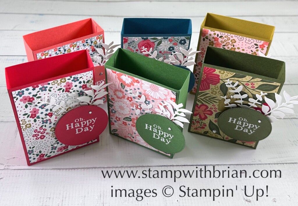 Tricks & Treats Dies Gift Box, Garden Walk Designer Series Paper, Stampin Up!, Brian KingThere’s enough room in each box for some peppermints or chocolates and a small gift. Who doesn’t need those during a day-long team meeting?! While the boxes are cropped with the Tricks & Treats Dies, but there’s nothing Halloween-y about these little boxes. Here’s a look at the Tricks & Treats Bundle, which includes the Tricks & Treats Dies (making them useful throughout the year):