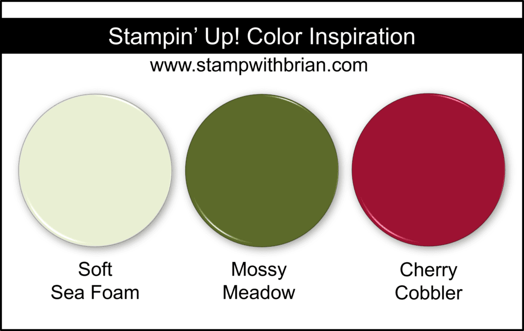 The Shining Christmas Specialty Designer Series Paper features Mossy Meadow and Cherry Cobbler with a white background. I added a small panel of Soft Sea Foam and a sentiment base of Soft Sea Foam. If you like this mix of Soft Sea Foam, Mossy Meadow and Cherry Cobbler as much as I do, I hope you will save this for future reference: