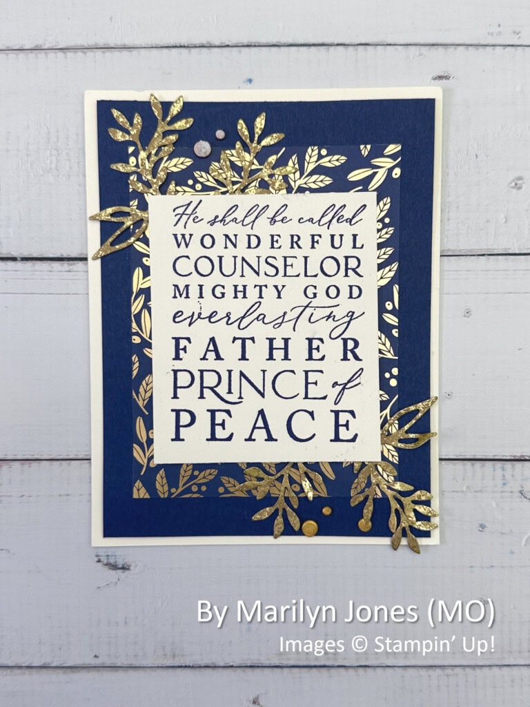 Marilyn, I just loved receiving your card. The picture doesn’t do it justice but photos rarely do. I love how you added gold leaves that extend off the card. Very nicely done! thank you