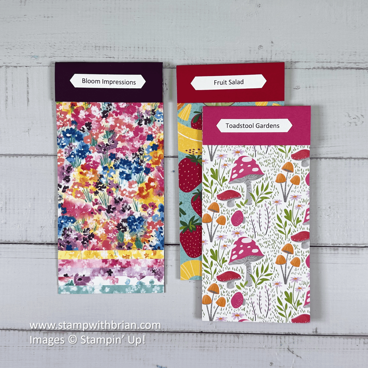 On Thursday, I shared the little tags I made to accompany the Mini Catalogs and Sale-a-Bration brochures I sent to my customers. The tags feature the Terrific Toadstools Bundle (from the upcoming Mini Catalog) and the Toadstool Gardens 6″ x 6″ Designer Series Paper (from the Sale-a-Bration brochure).