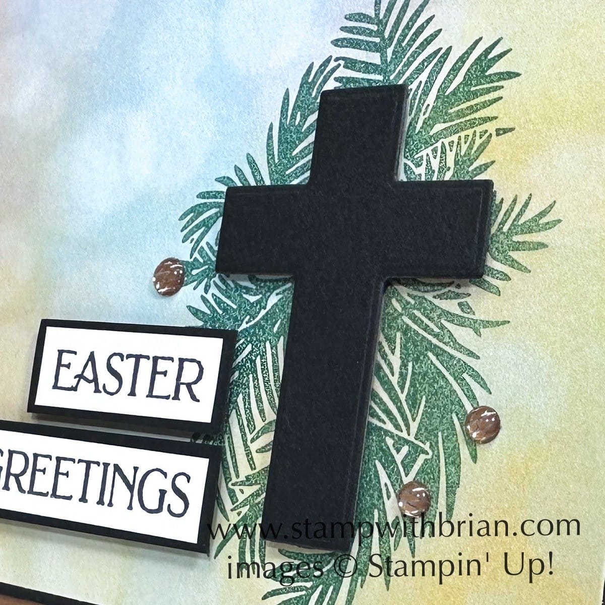 The sentiment on my card is stamped with the Storybook Friends stamp set. I split it up so I could line it up along the right side on my card. That allowed me to tuck the sentiment into the corner of the cross and keep the eye’s attention on the cross.