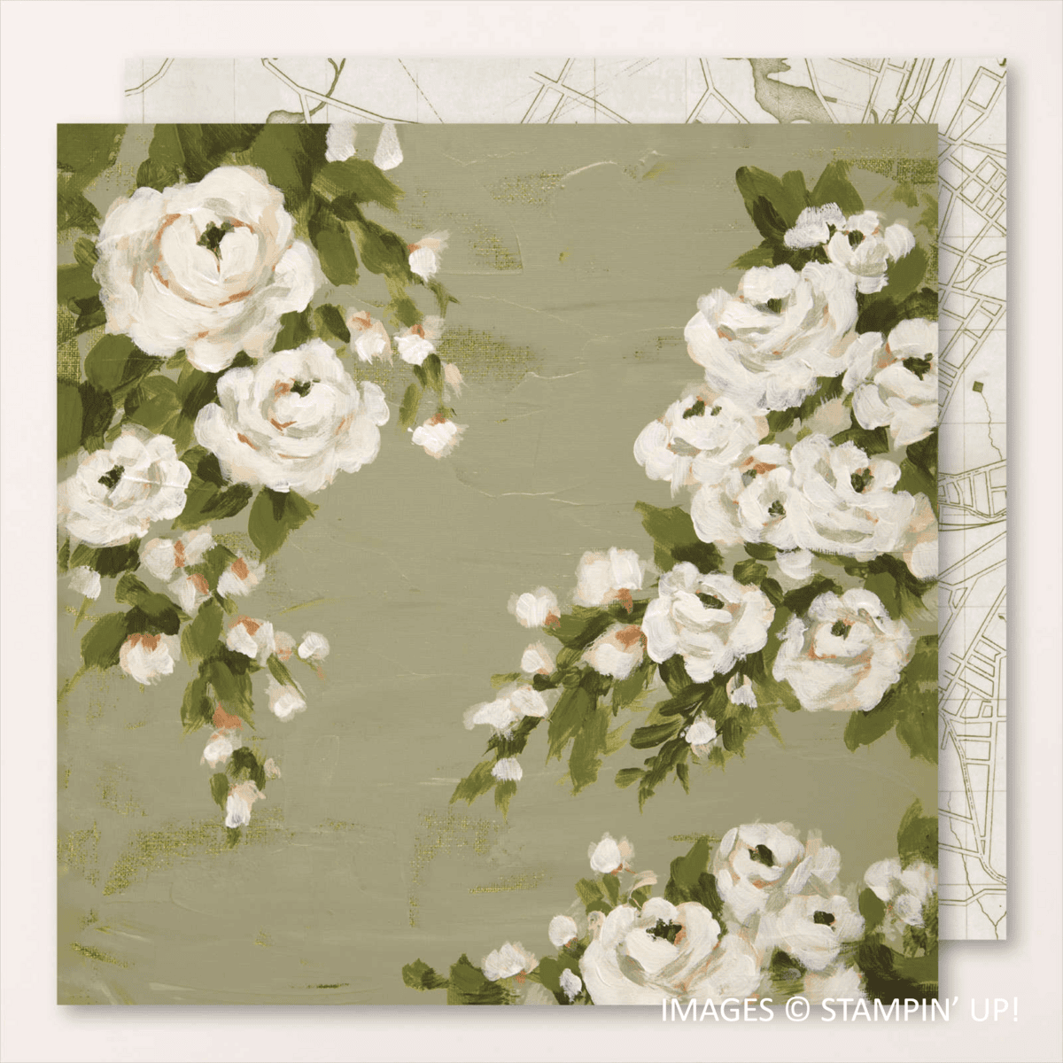 Like yesterday’s post, this card features the Beautiful Gallery 6″ x 6″ Designer Series Paper. The papers features beautiful landscapes, lovely floral patterns and designs that work with any type of project. Here’s a look at the colors and patterns in the Beautiful Gallery 6″ x 6″ Designer Series Paper: