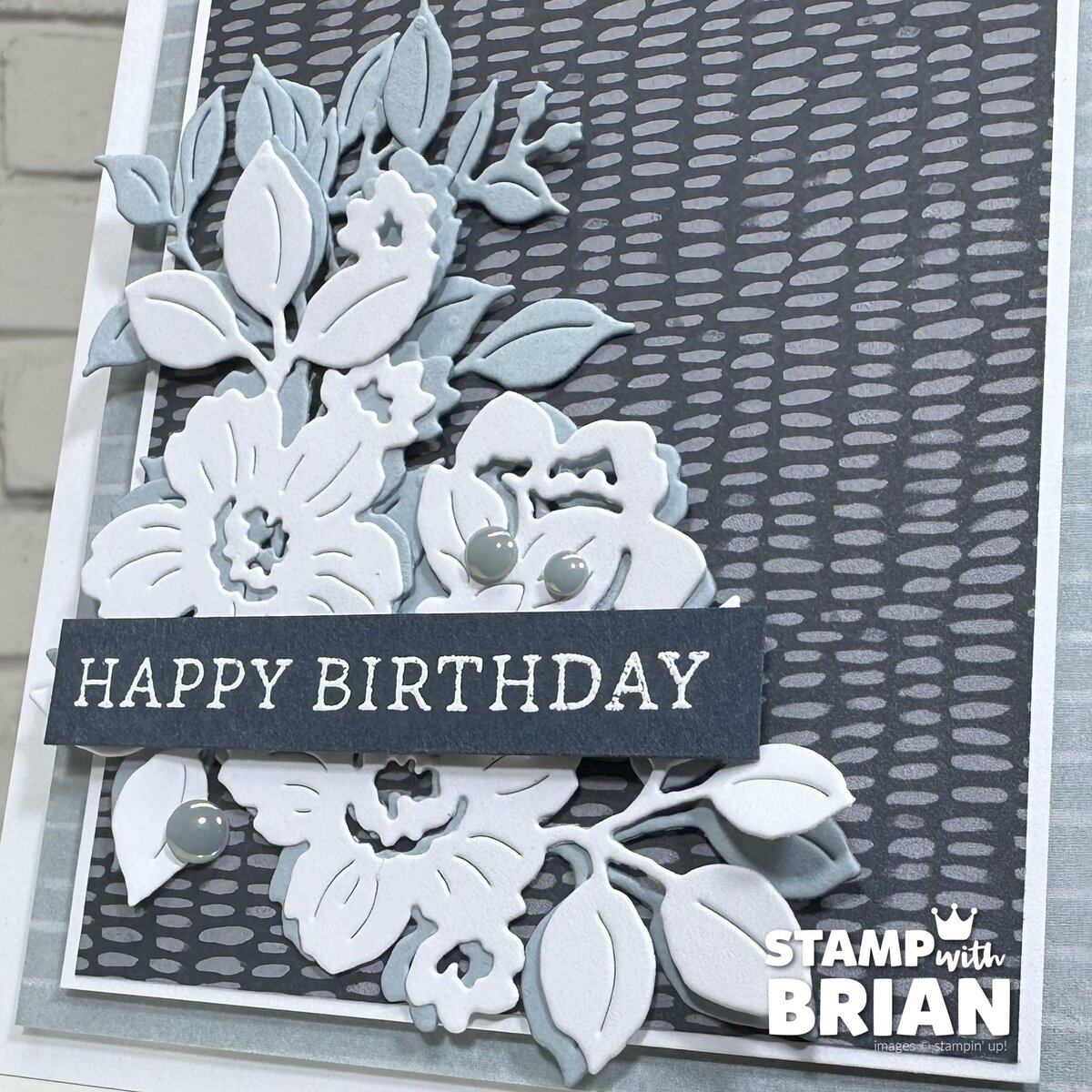 You don’t have to follow my blog closely to know that the Simply Said stamp set is one of my absolute go-to’s. I reach for it all the time! The clean fonts are perfect for stamping on strips of cardstock, making it easy to add just the right sentiment to any project. For today’s card, I heat embossed the “HAPPY BIRTHDAY” with white embossing powder on a Secret Sea strip—a simple, bold sentiment that pops beautifully against the intricate floral background. Here’s a look at this must-have stamp set: