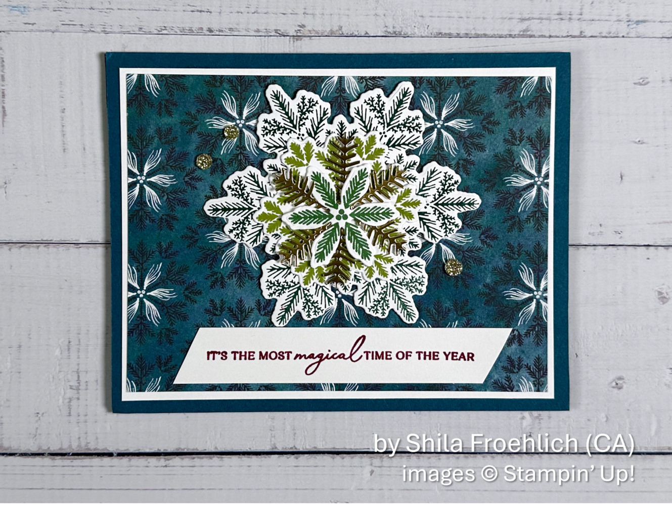 Welcome to DAY FIVE of my Holiday One-for-One Card Swap. For several weeks in November, I ran to my mailbox each day to collect the GORGEOUS cards you sent for the card swap I hosted. Today I have the pleasure of sharing some of them with you. In a series of several posts over the next couple of weeks, I will share each of these beautiful cards with everyone. There’s so much wonderful inspiration to share!