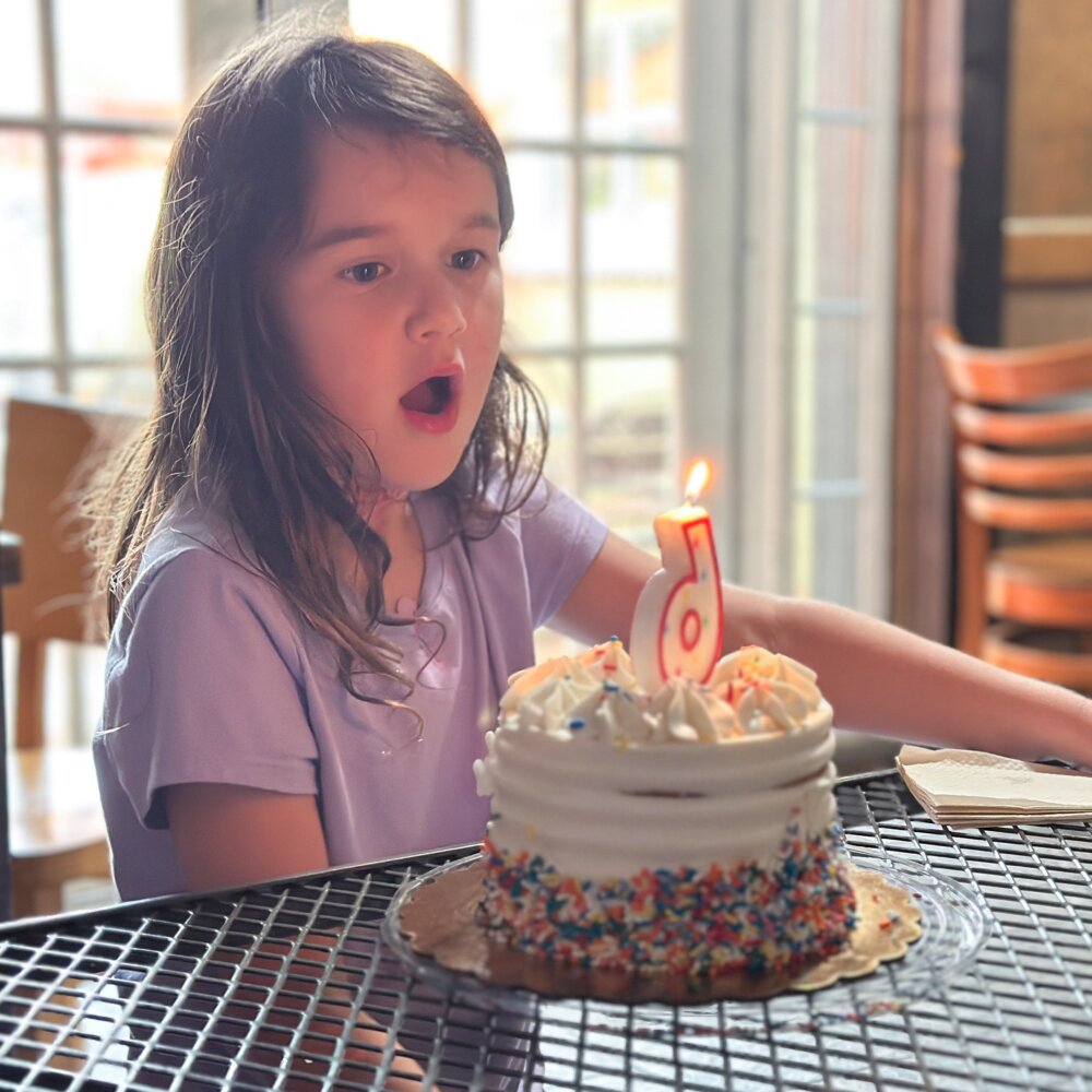 Here’s a picture from Ivy’s birthday celebration with us. And yes – she’s wearing the same color as the card she would receive. Nice work, Brian!