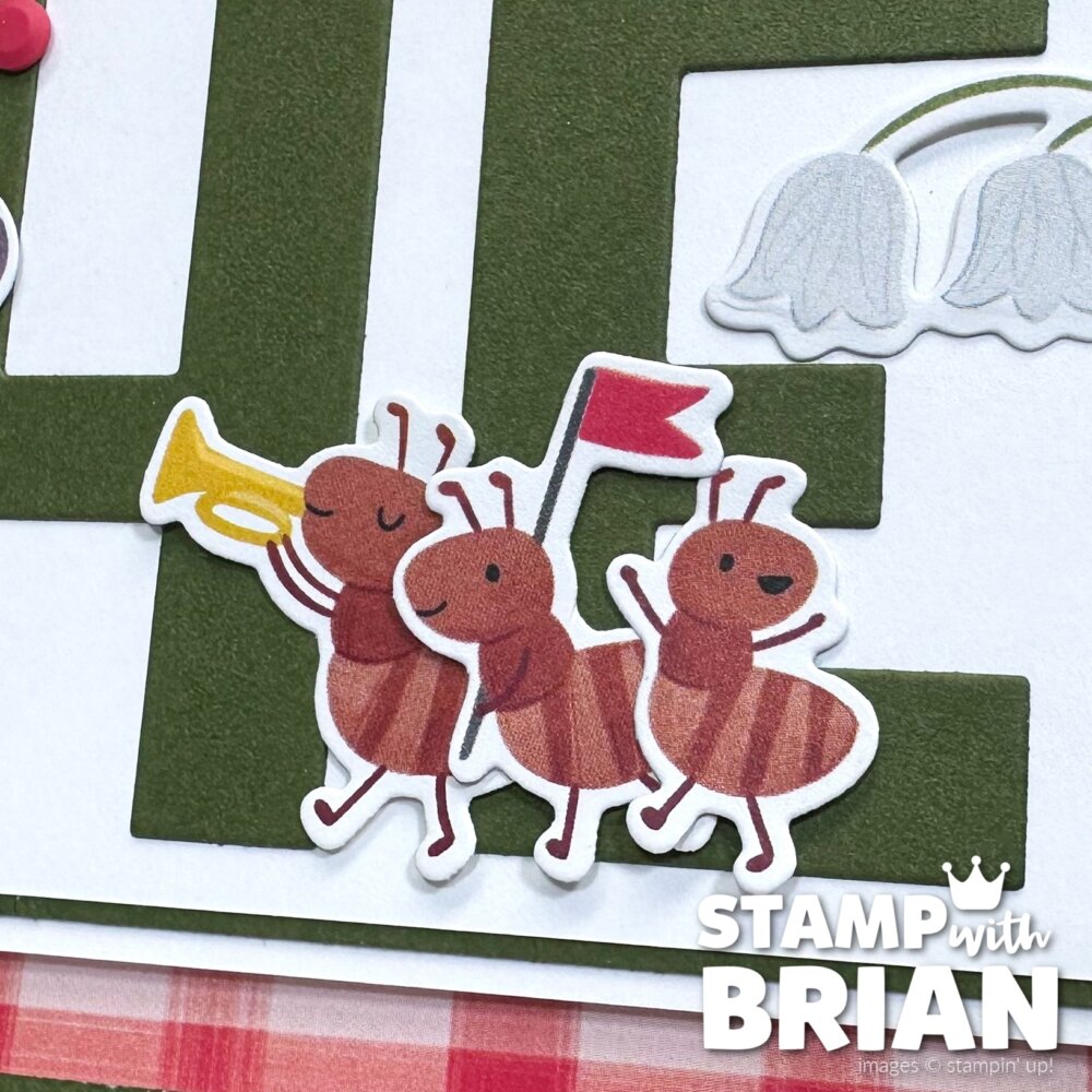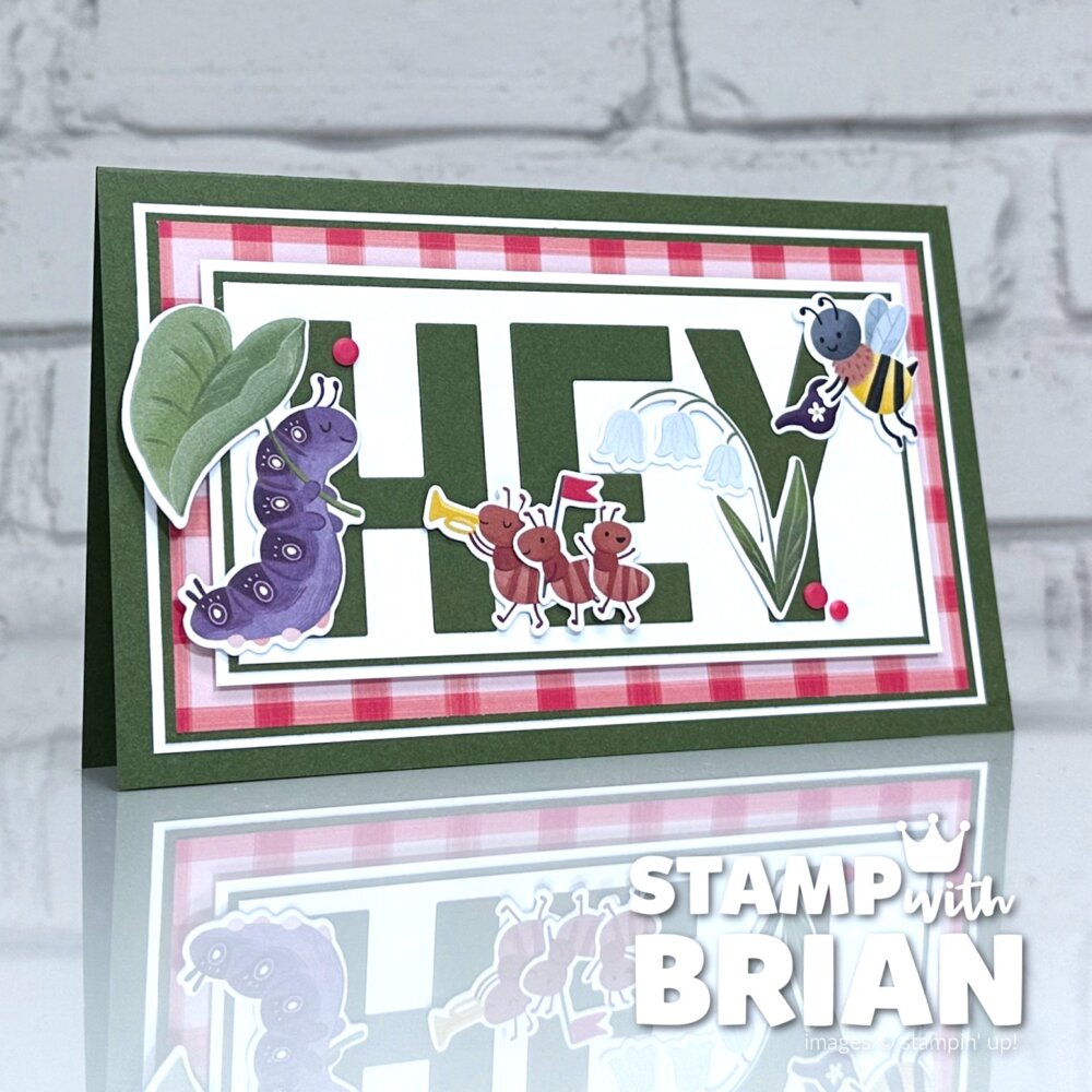 The base of my card features a playful picnic table plaid from the Cute Bugs Designer Series Paper. The colors and patterns in this pack are bright, cheerful, and perfect for spring and summer projects.