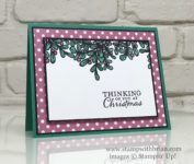 Joanne James is hosting this week’s Paper Players color challenge – Mint Macaron, Emerald Envy and Real Red. What a beautiful combination. I initially thumbed through my Presents and Pinecones Designer Series Paper before realizing that paper is designed with Cherry Cobbler. I could have argued for my “artistic license,” but I wanted to honor her selections. I went with bold, graphic and simple. Here’s my card: And here’s the banner for the challenge that…